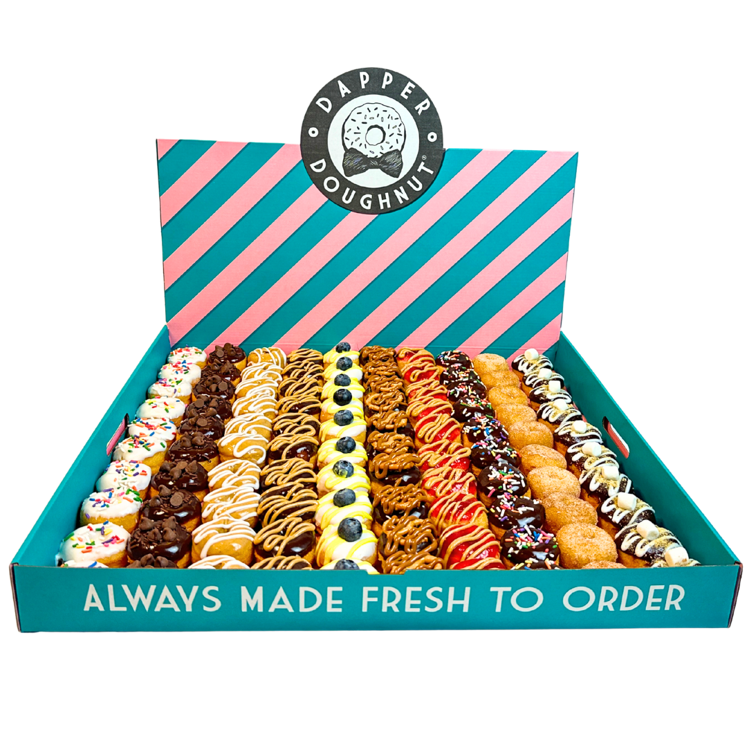 Hot, fresh, and made to order—Dapper mini doughnuts are crispy, fluffy, and full of flavor. Topped to perfection and always served fresh, they’re more than a treat—they’re an experience!